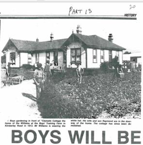 Boys tending a garden crop in front of Guy House at Weraroa Boys Training Farm on Kimberley Rd, Levin